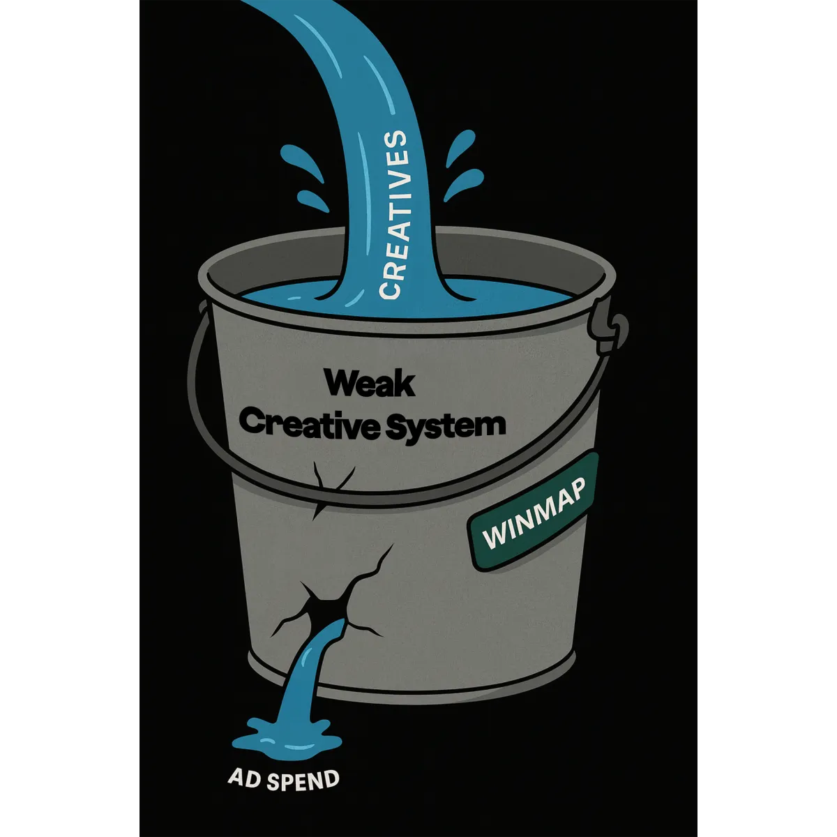 Most teams just produce more content. Our WINMAP system is built to engineer performance. It’s a structured, data-driven process that fuels your media buyer, lowers CPA, and compounds profitable growth.